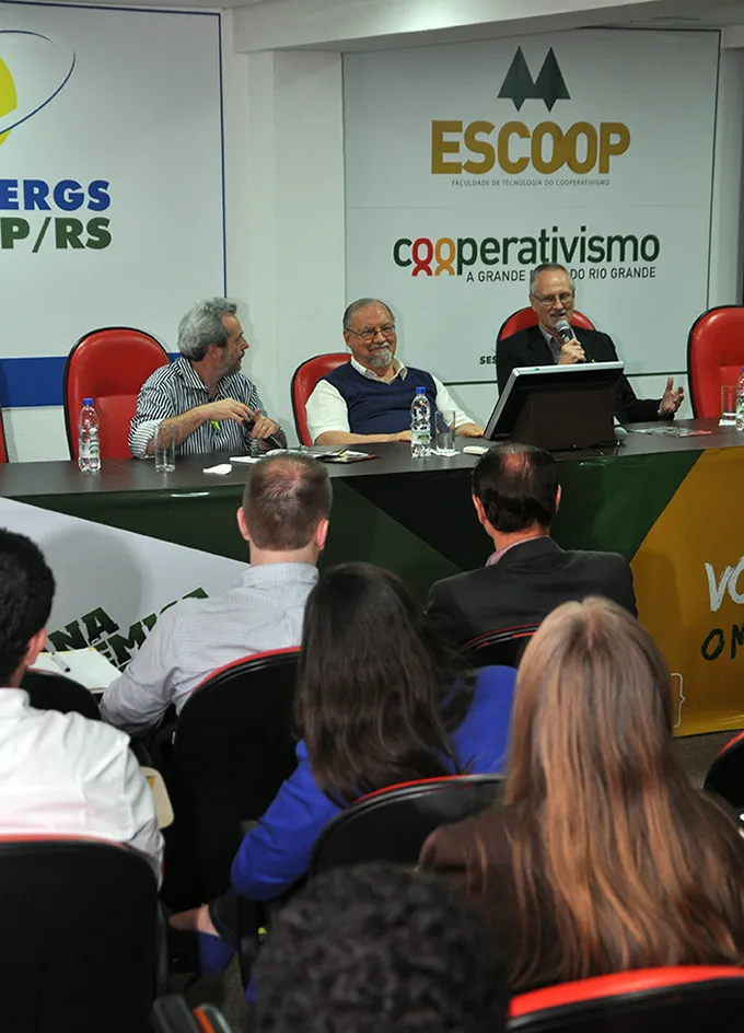 Além do painelista e dos debatedores, Vergilio Perius e Derli Schmidt, estiveram presentes na abertura da Semana Acadêmica o coordenador de Ensino, Pesquisa e Extensão da Escoop, Mario De Conto, professores, alunos e graduados da instituição e colaboradores do Sistema Ocergs-Sescoop/RS.